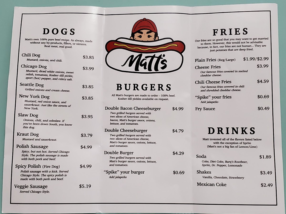 Two grilled patties served with Matt's burger sauce, onions, lettuce, and tomatoes.
